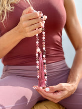 Japa Mala de rodonita, cuarzo rosa y jaspe porcelana