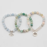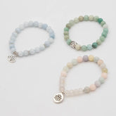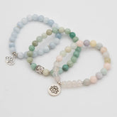 - Aguamarina: Piedra que simboliza felicidad y esperanza, nos ayuda a obtener conocimiento, verdad y sabiduría. Calma los miedos, aumenta la sensibilidad y agudiza la intuición. Sus energías calmantes ayudan a bajar el ritmo y tranquilizan la mente. Útil para el cierre en todos los niveles, promoviendo la auto expresión.