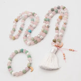Japa Mala y pulsera a juego de Amazonita, Howlita y Cuarzo Rosa