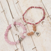 Pulsera de Turmalina Rosa con detalle de Luna en plata de Yogimi.